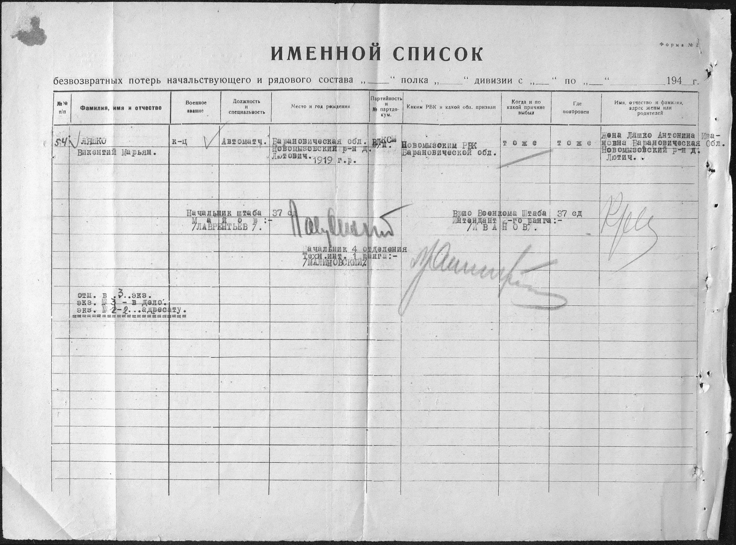 Ошибочно числится похороненным: Медвежьегорский р-н, 9 км от п. Повенец по ш. на Габсельгу
