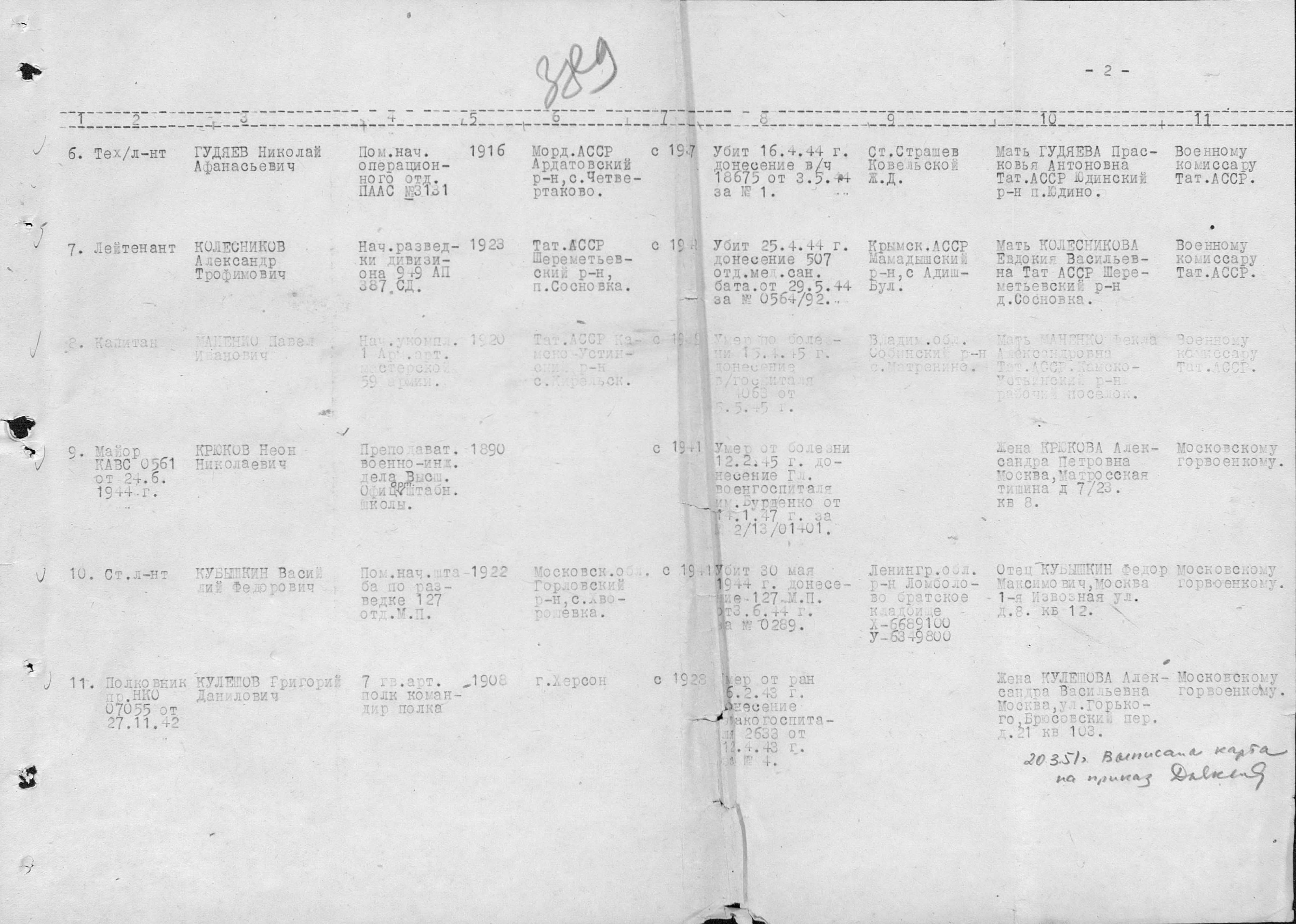 Последнее по выбытию место службы