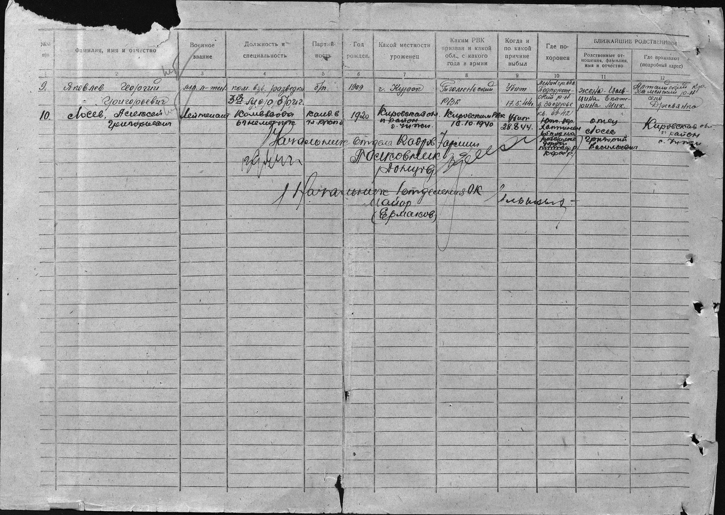 16.10.1940, Кировский РВК, Кировская обл., Кировский р-н