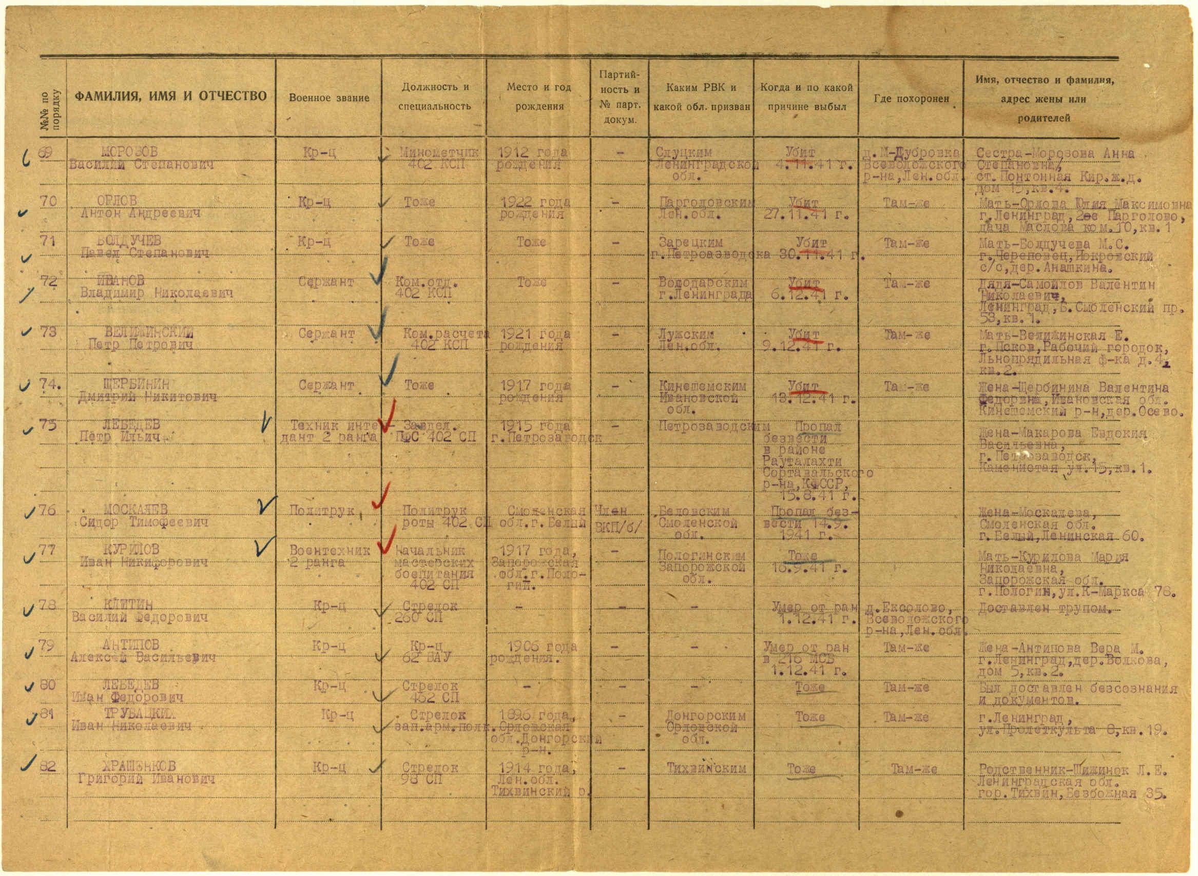 Место проживания родственников на момент призыва