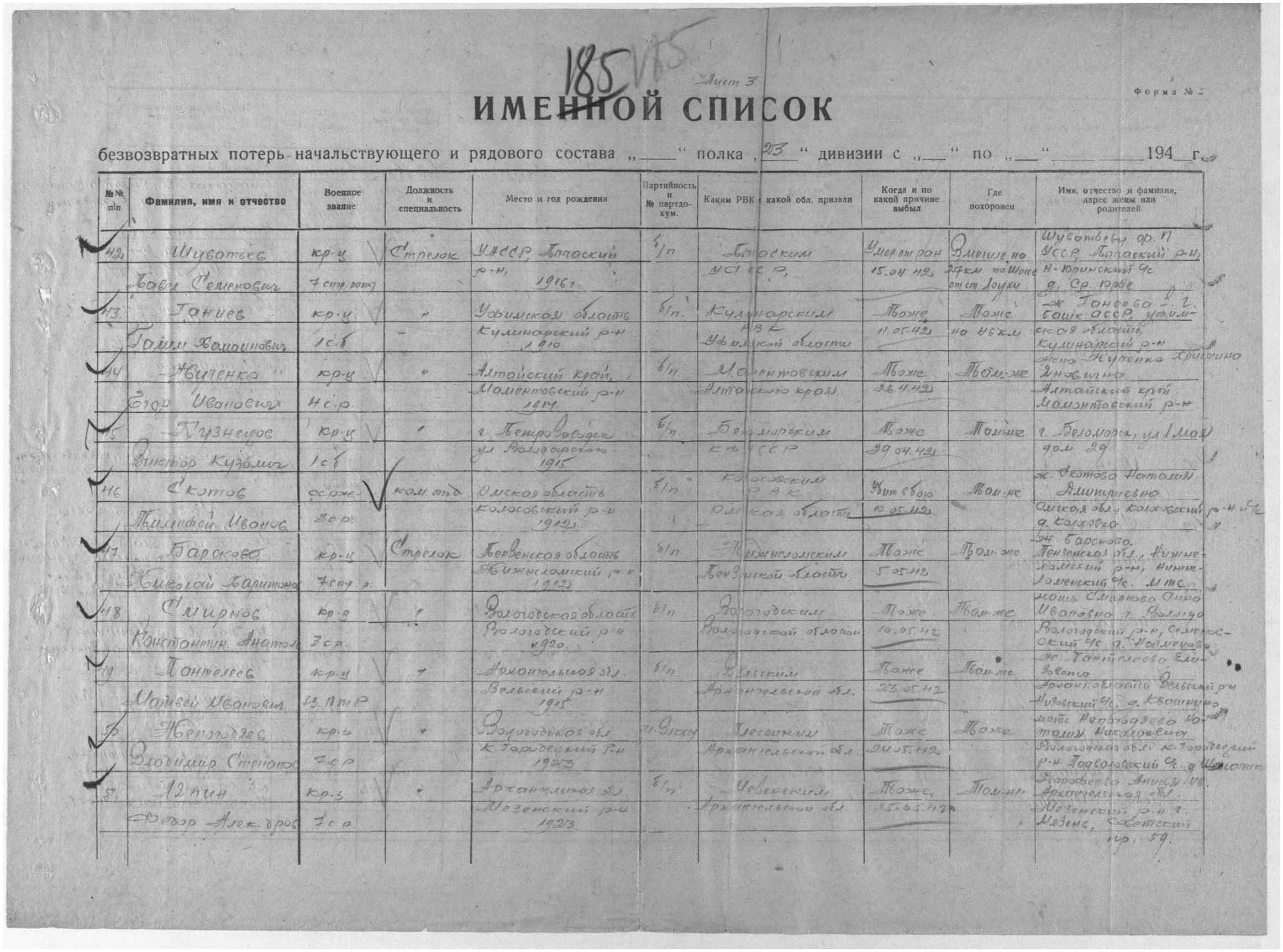 Место проживания родственников на момент призыва